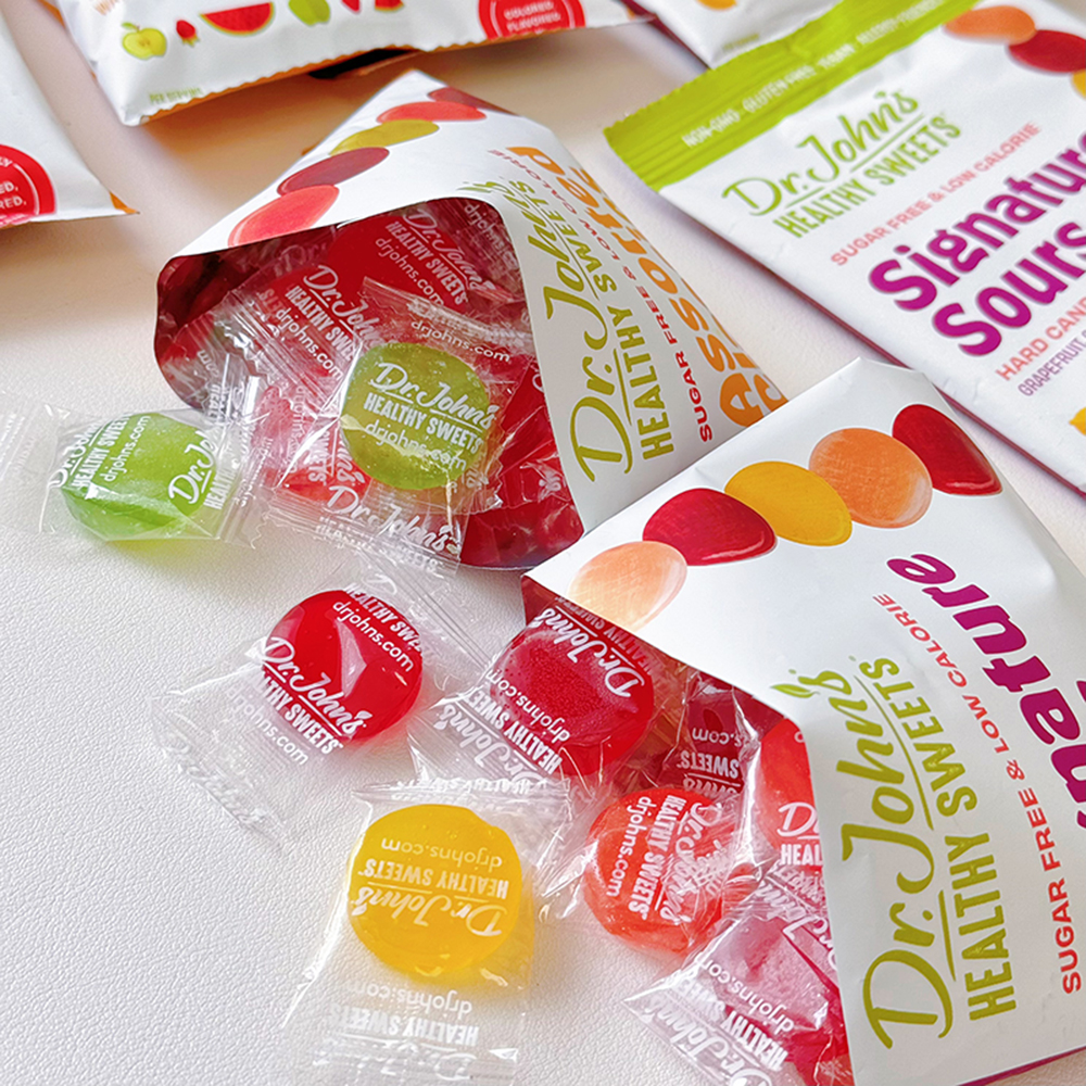 Dr.John’s糖果品牌是由一名牙科医生John Bruinsma和他的妻子Debra一名牙科卫生医师,他们共同建立的。 1995年的一天,约翰博士正要下班,他顺手拿了一支无糖棒棒糖放到嘴里,还没走到门口他就扔掉了这支棒棒糖。 他想“我们给病人就吃这种糖吗?”市面上一定会有更好的替代产品。遗憾的是,市面上他找不到更好的无糖替代品, 于是他就开始了一项任务:开发出口感最好的无糖糖果。约翰博士的糖果品牌就此诞生了。约翰博士刚开始想制作无糖棒棒糖的时候, 完全是为了口腔行业。但通过20多年的努力和创新,他成为了世界上最具创新力和最健康糖果的制造商。约翰博士做了深入研究和开发, 将木糖醇加入硬糖中,并在两年后成功了。这是市面上第一支木糖醇棒棒糖!于是,Dr.John’s糖果就此诞生。